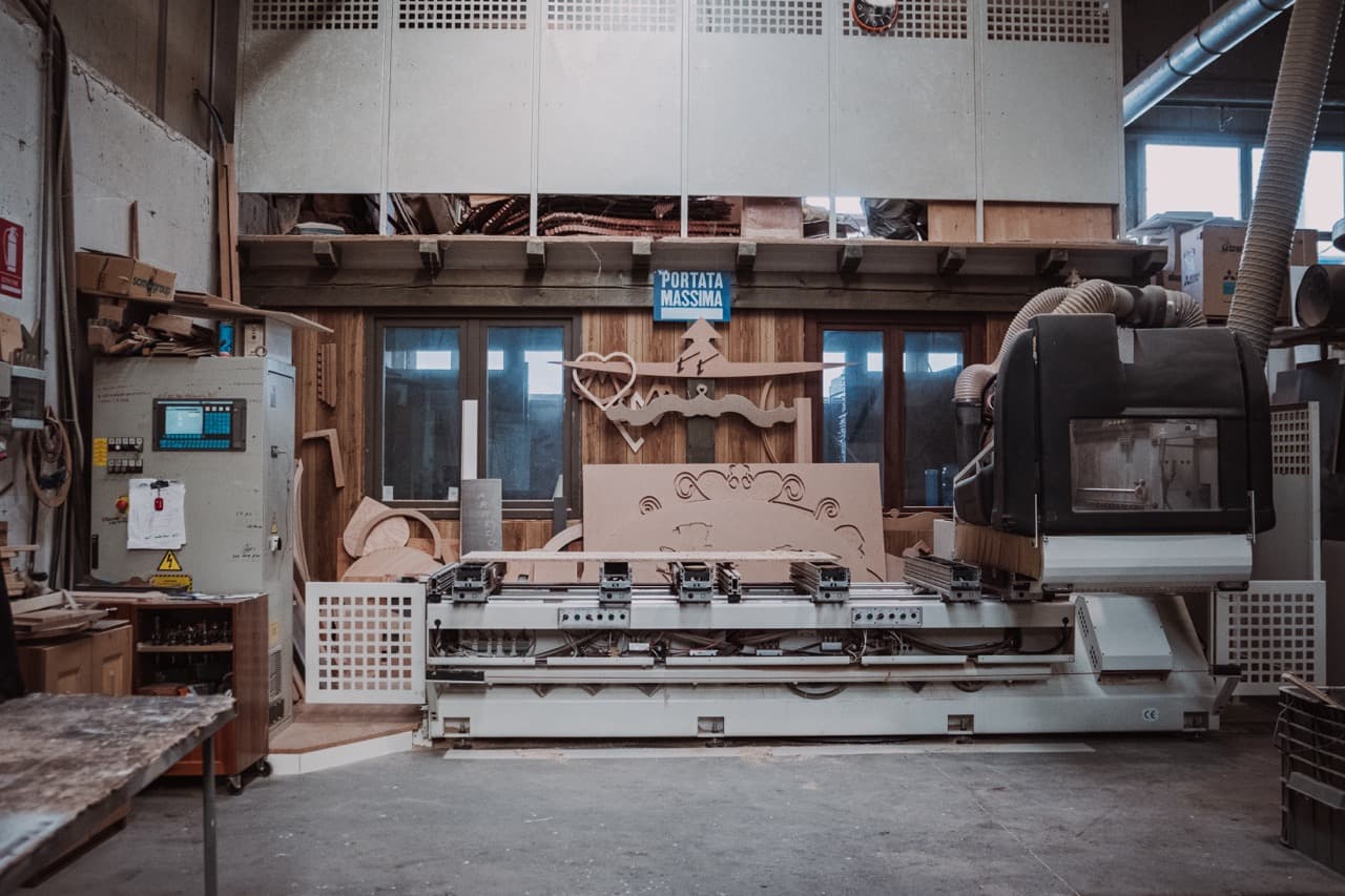 La nostra falegnameria è attrezzata con macchinari all'avanguardia; come il centro di lavoro a controllo numerico SCM in grado di ottimizzare le fasi di realizzazione aumentando la precisione dei prodotti. La tecnologia unita a all'abilità manuale, ci consente di produrre arredi che si distinguono per la loro qualità e unicità.